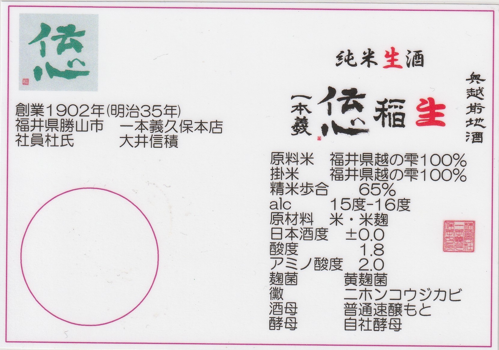 福井県勝山市 一本義久保本店の純米生酒。 火入れをしていないので、麹菌、酵母菌が 生きています。