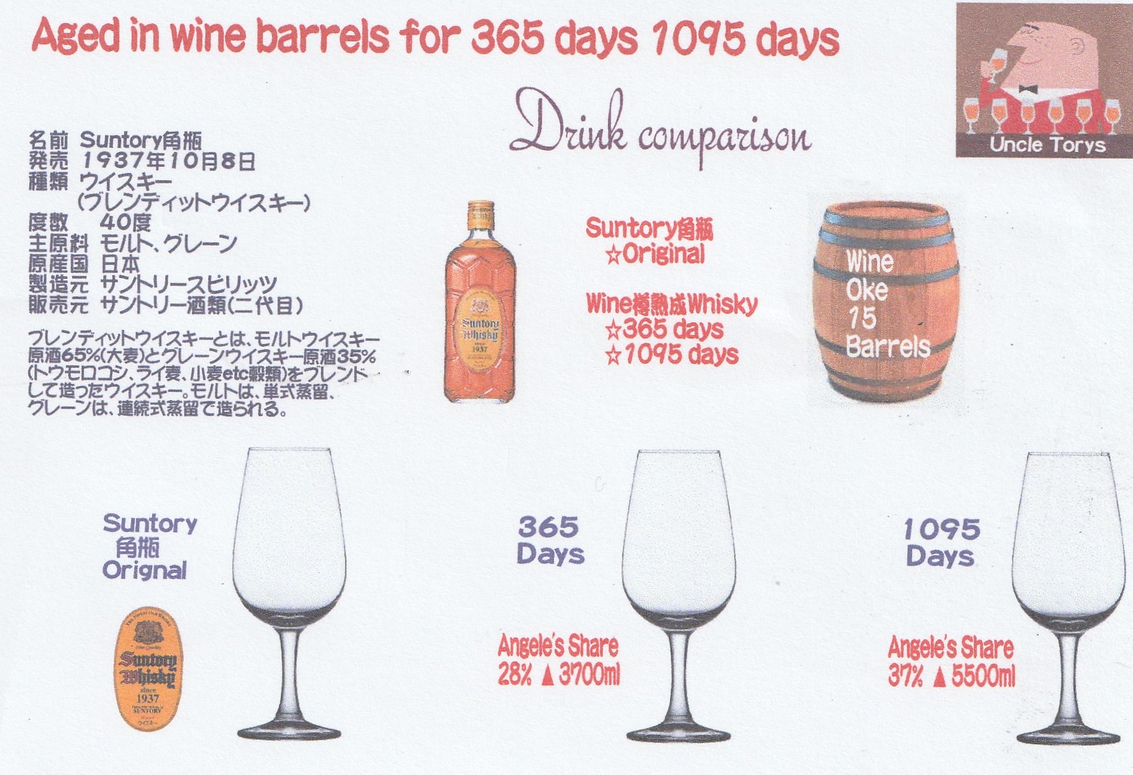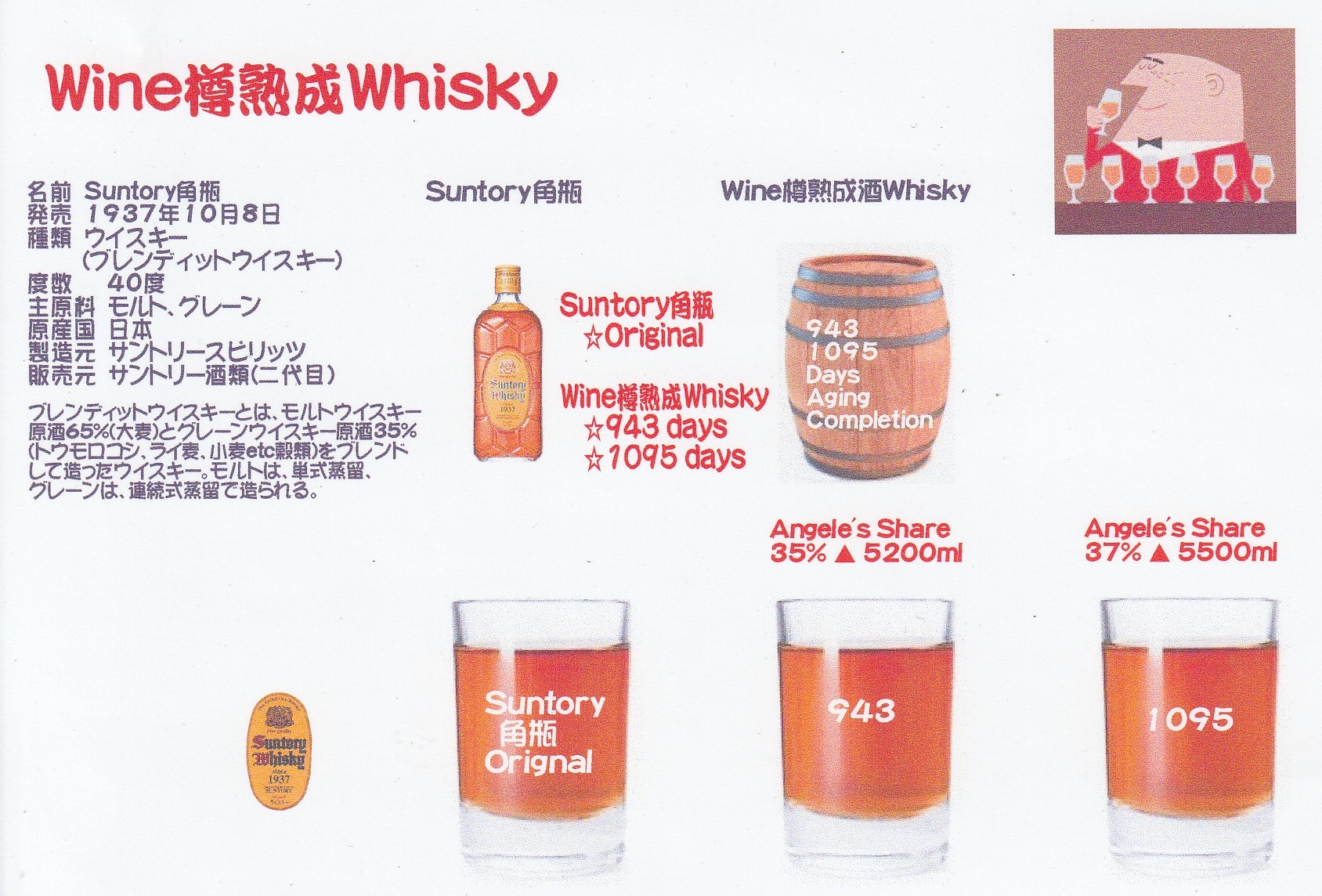 Suntory角瓶とWine樽熟成Suntory角瓶の〔Oryginal & 943 days & 1095 days〕三種類飲み比べ