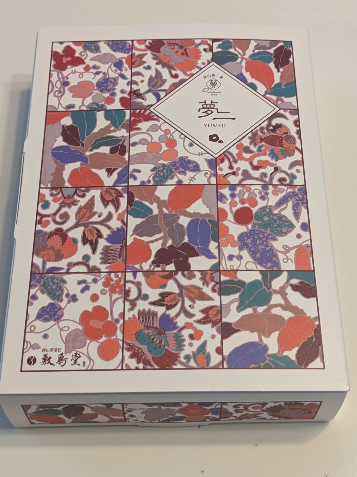 敷島堂の代表的お菓子「夢二」です。綺麗な箱に入っているので贈り物にも。