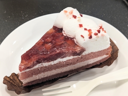イチゴの香りも豊かな「ストロベリーショートケーキ」¥490です。