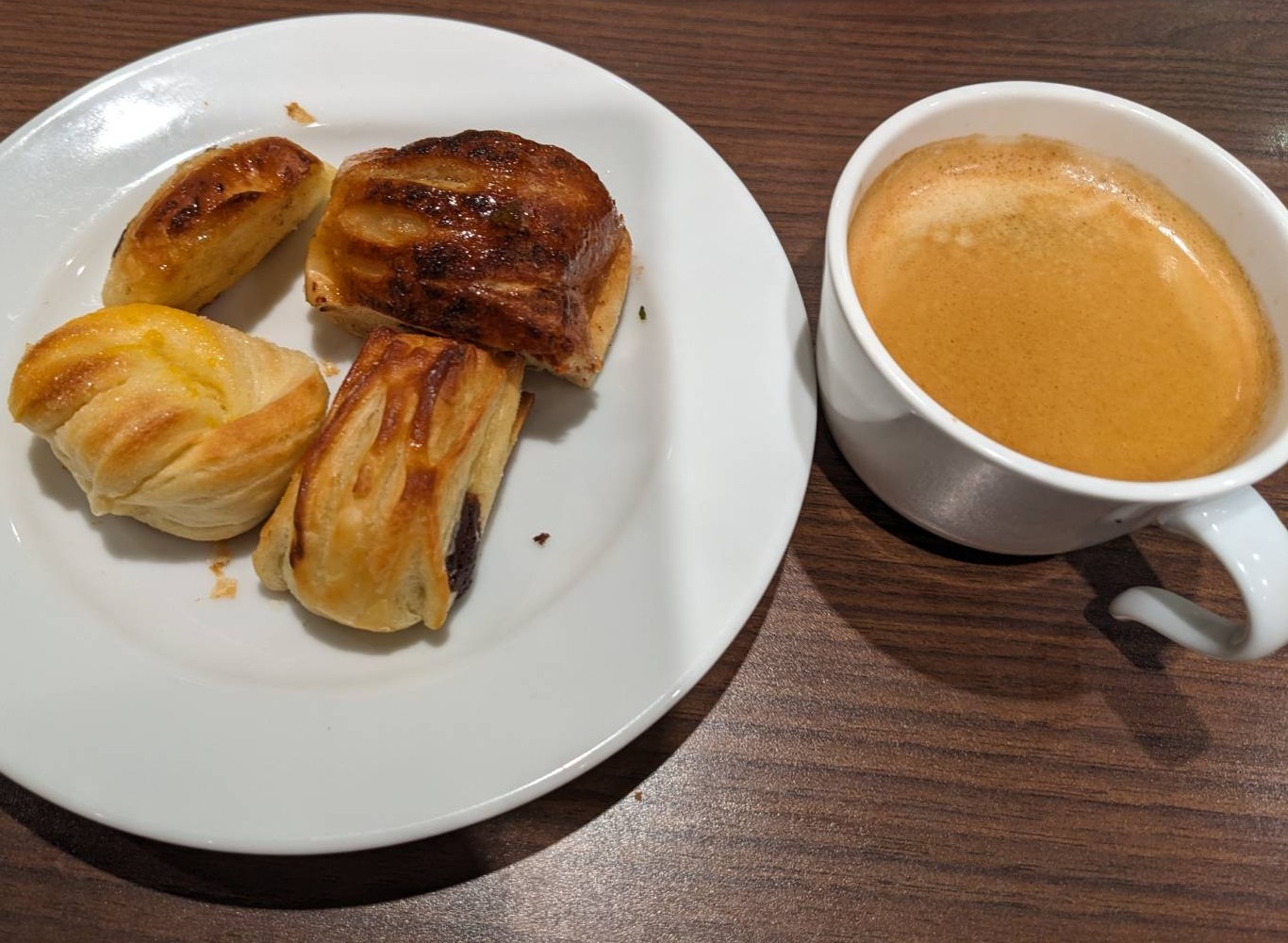 チョコデニッシュをはじめとした、食べ放題の焼き立てパンです。