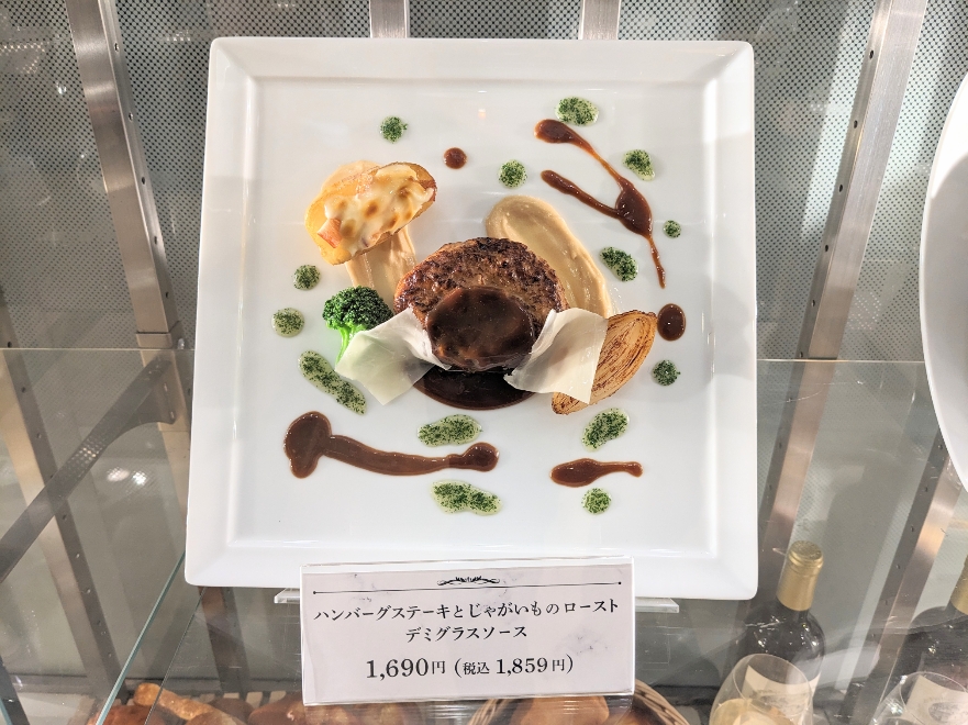 「ハンバーグステーキとじゃがいものロースト」です。綺麗な料理で高級感に溢れています。
