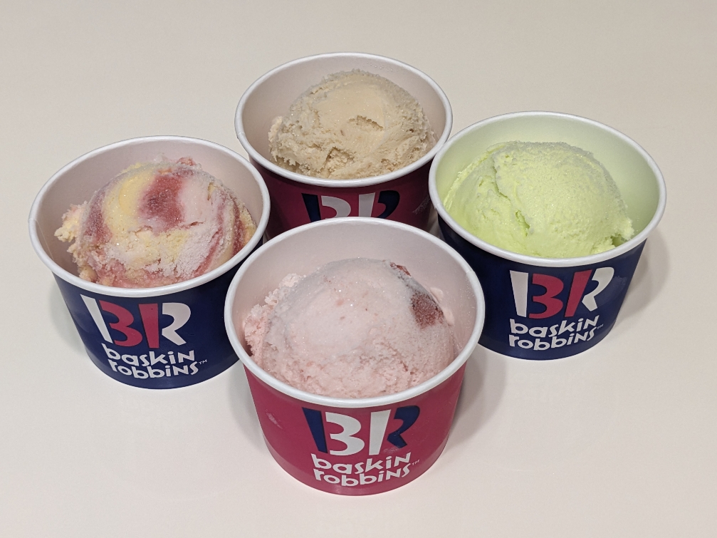 4つのアイスクリームは色とりどりに選べます。彩りも華やかです。