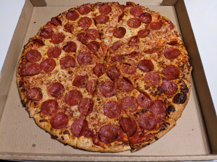 フードコートではピザも買えます。写真はホールの「ペパロニピザ」です。