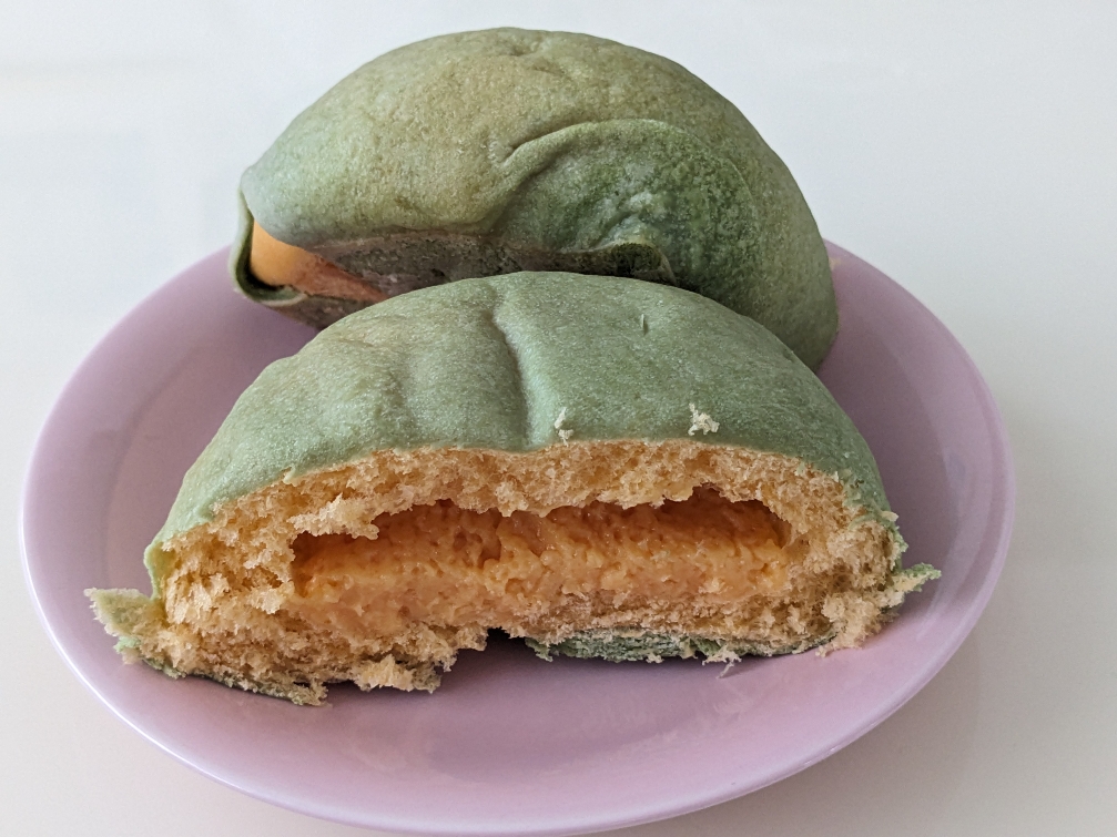 赤肉メロンを彷彿とさせるメロンパンです。外側は対照的にふんわりとしています。