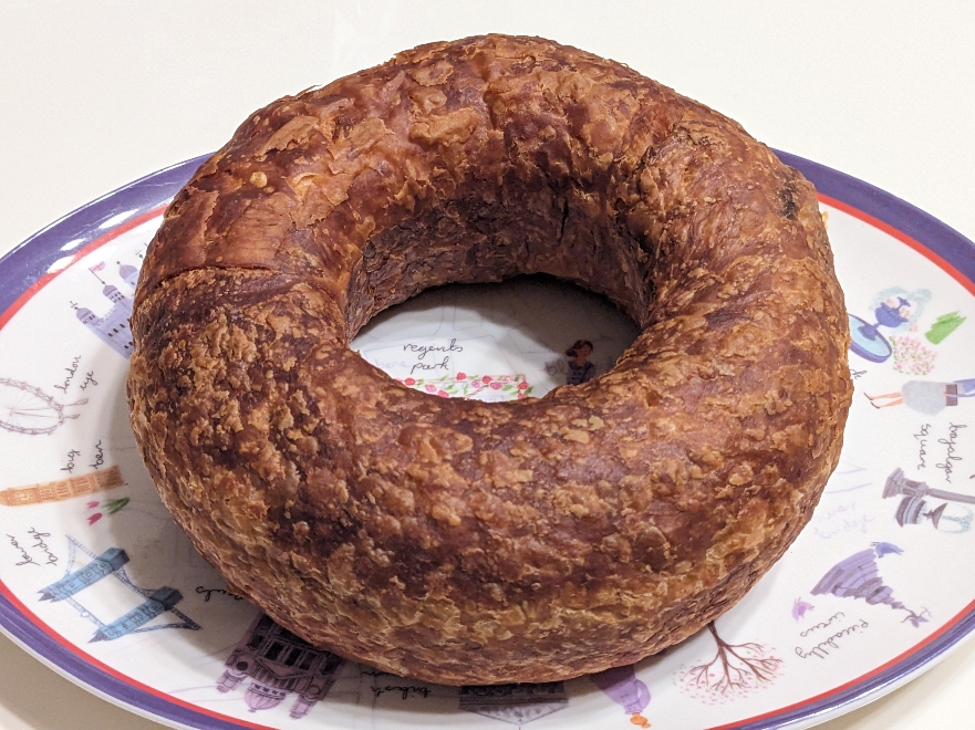 クルミが入ったビターなチョコレートが、リング状のデニッシュのパンの中に入っています。全体としては結構甘味の強いパンです。