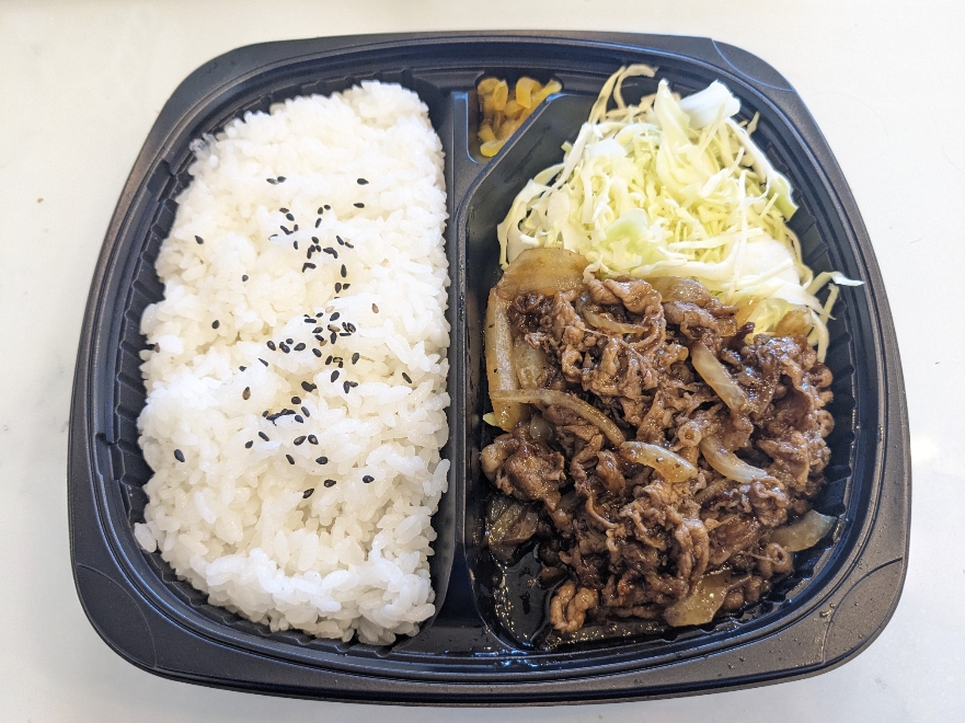 「牛焼肉弁当」¥712です。 牛肉を玉葱と甘辛く炒めた牛焼肉弁当です。